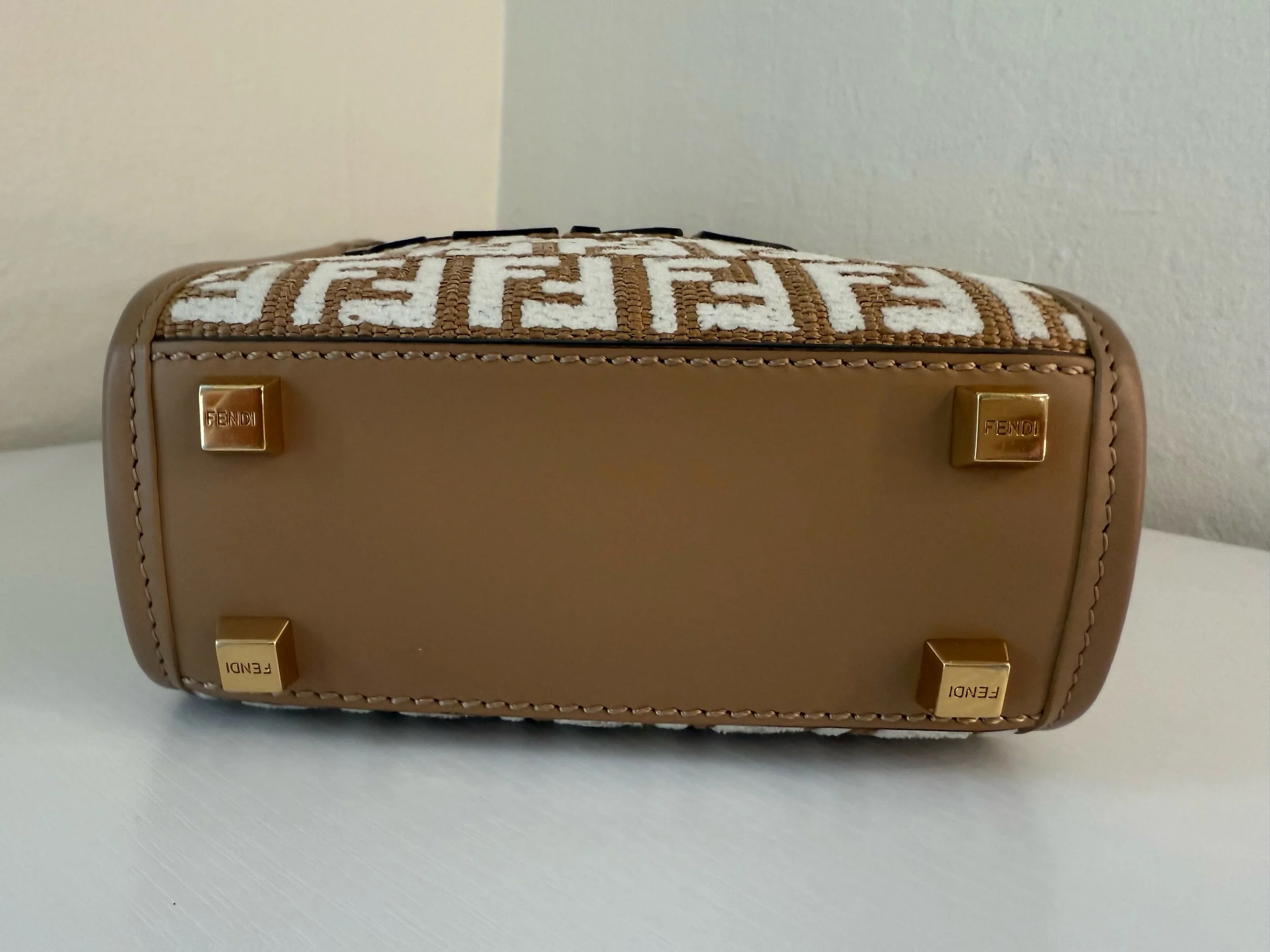 FENDI Mini Sunshine Shopper Tote Zucca Embroidered Raffia