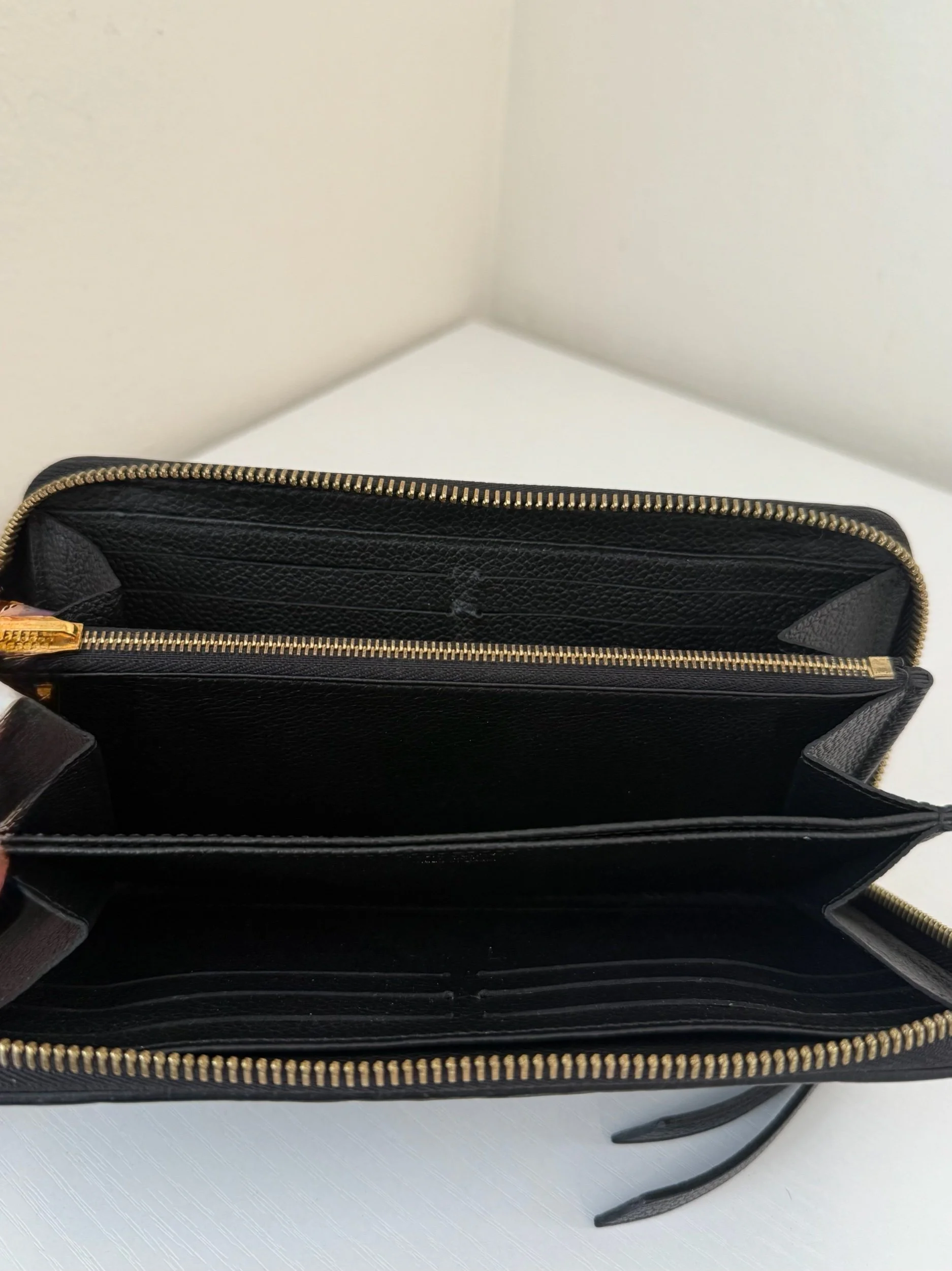 This classic Louis Vuitton Zippy Wallet is expertly fashioned from black Monogram Empreinte leather. Designed for both style and utility, the all-around zipper reveals a matching leather interior. Inside, you’ll find dedicated card slots, patch pockets, and a secure zip coin compartment to keep your essentials organized.