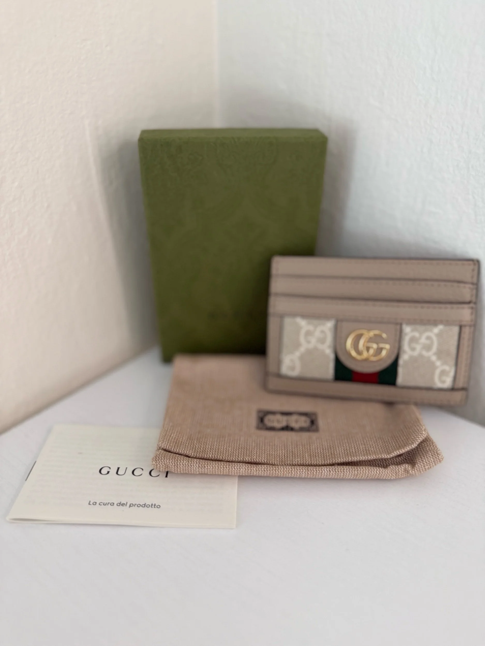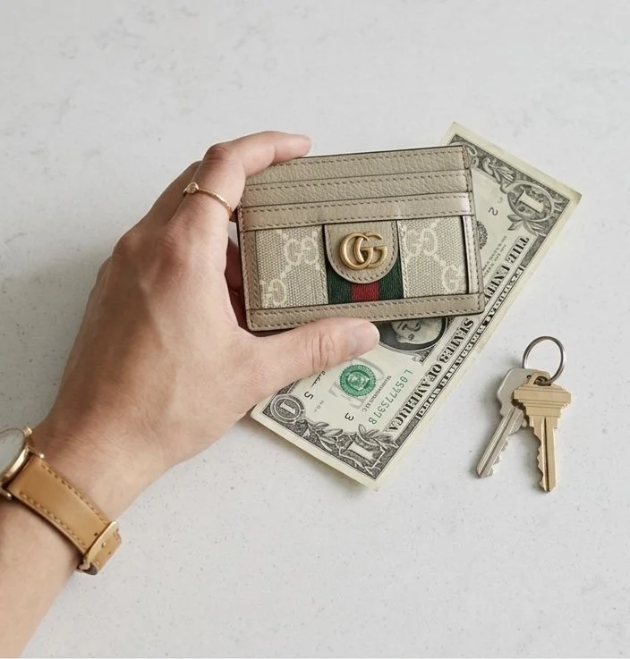 GUCCI Dollar Calfskin GG Supreme Monogram GG Marmont Card Case